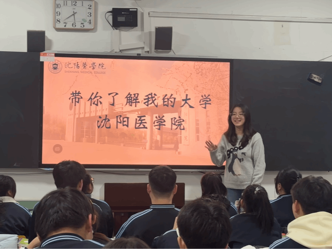此次活动令我感触颇深,重入熟悉的教室,学弟学妹眼中的憧憬与迷茫,恰似当年的自己。分享的过程,既是经验的传递,更是自我的复盘与成长。此次经历不仅搭建起沈阳医学院与母校高中的沟通桥梁,更以学子传帮带的温暖形式,让更多高中学子感受到医学事业的魅力与温度。