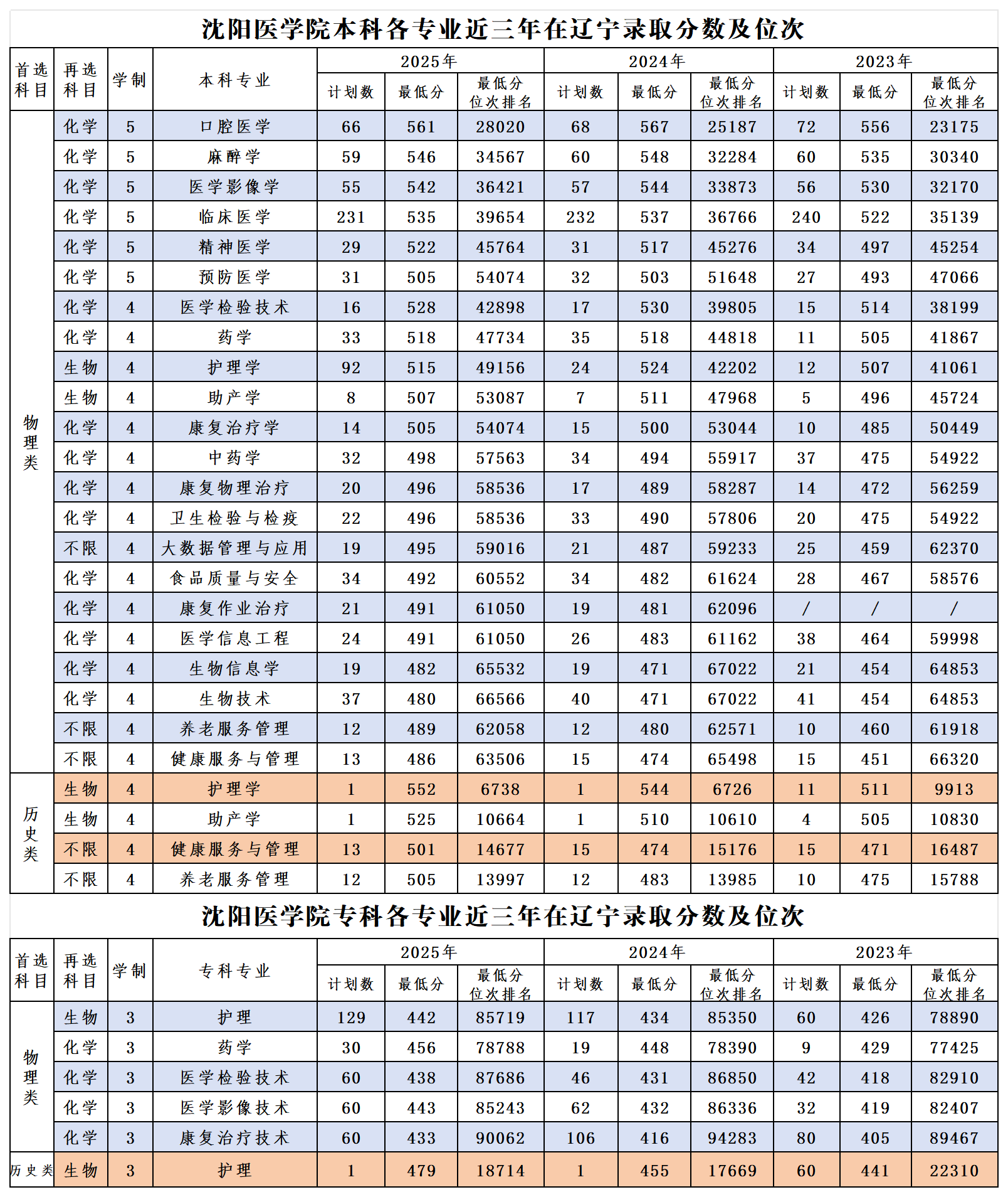 权威发布|沈阳医学院近三年在辽宁省录取分数及位次