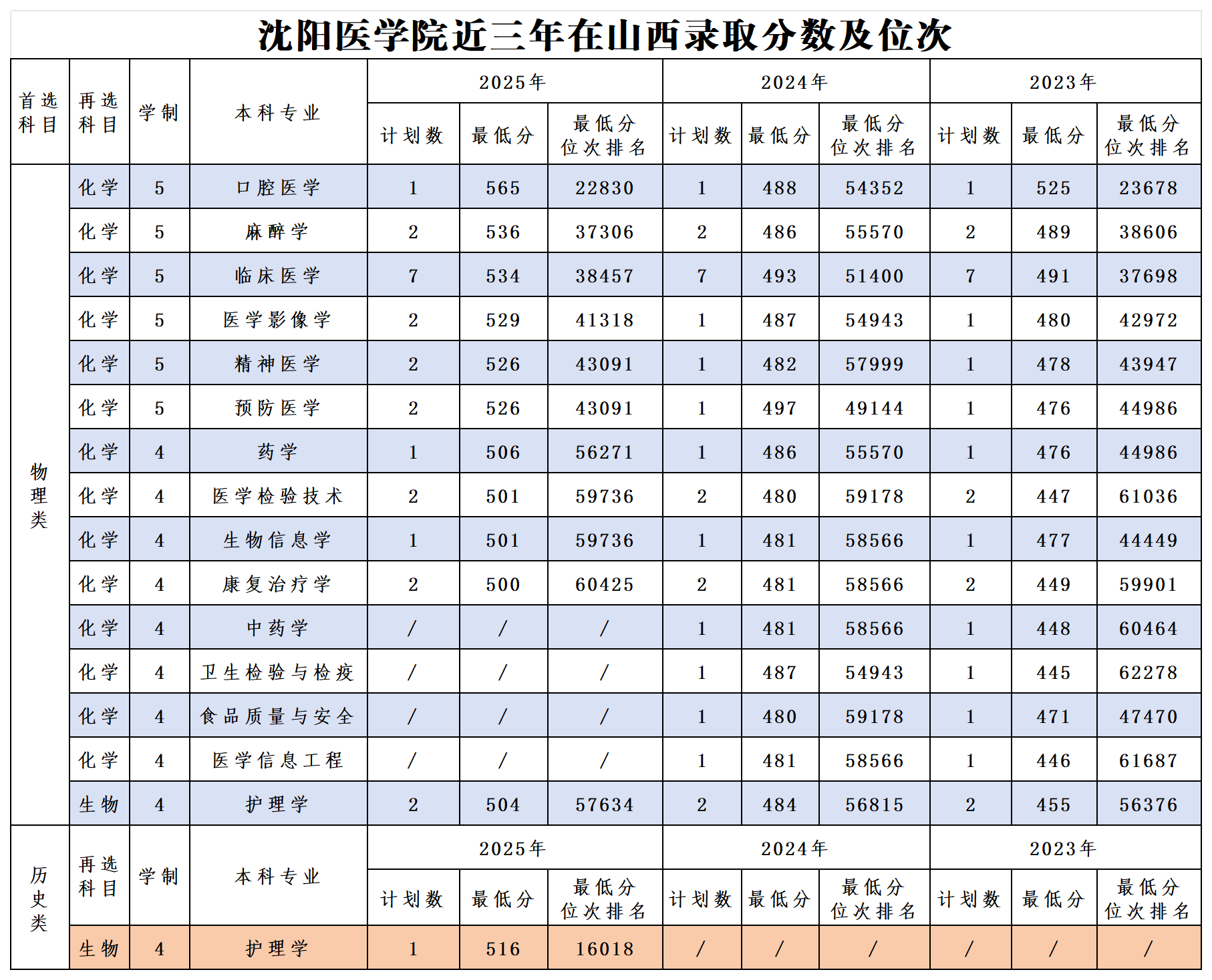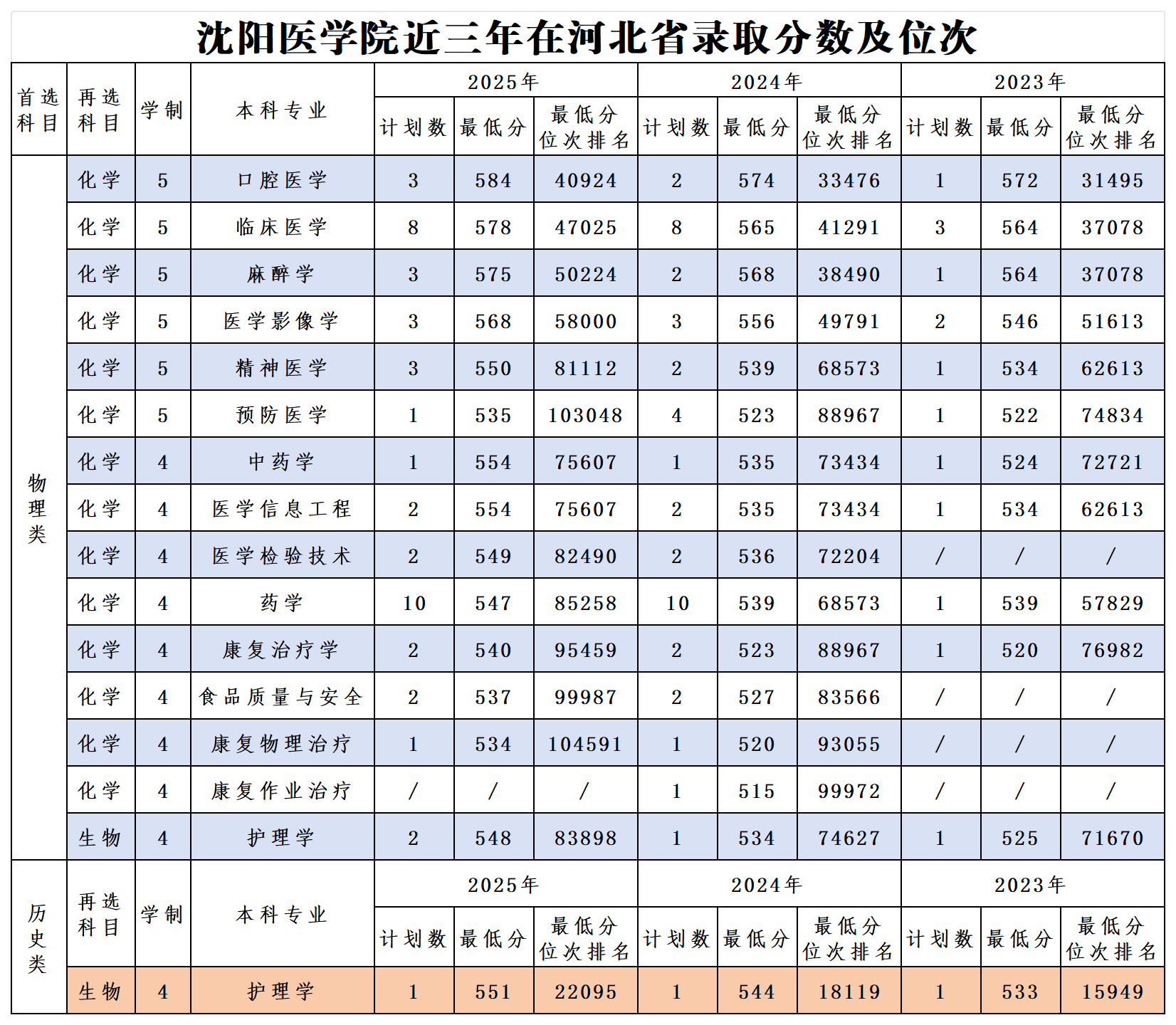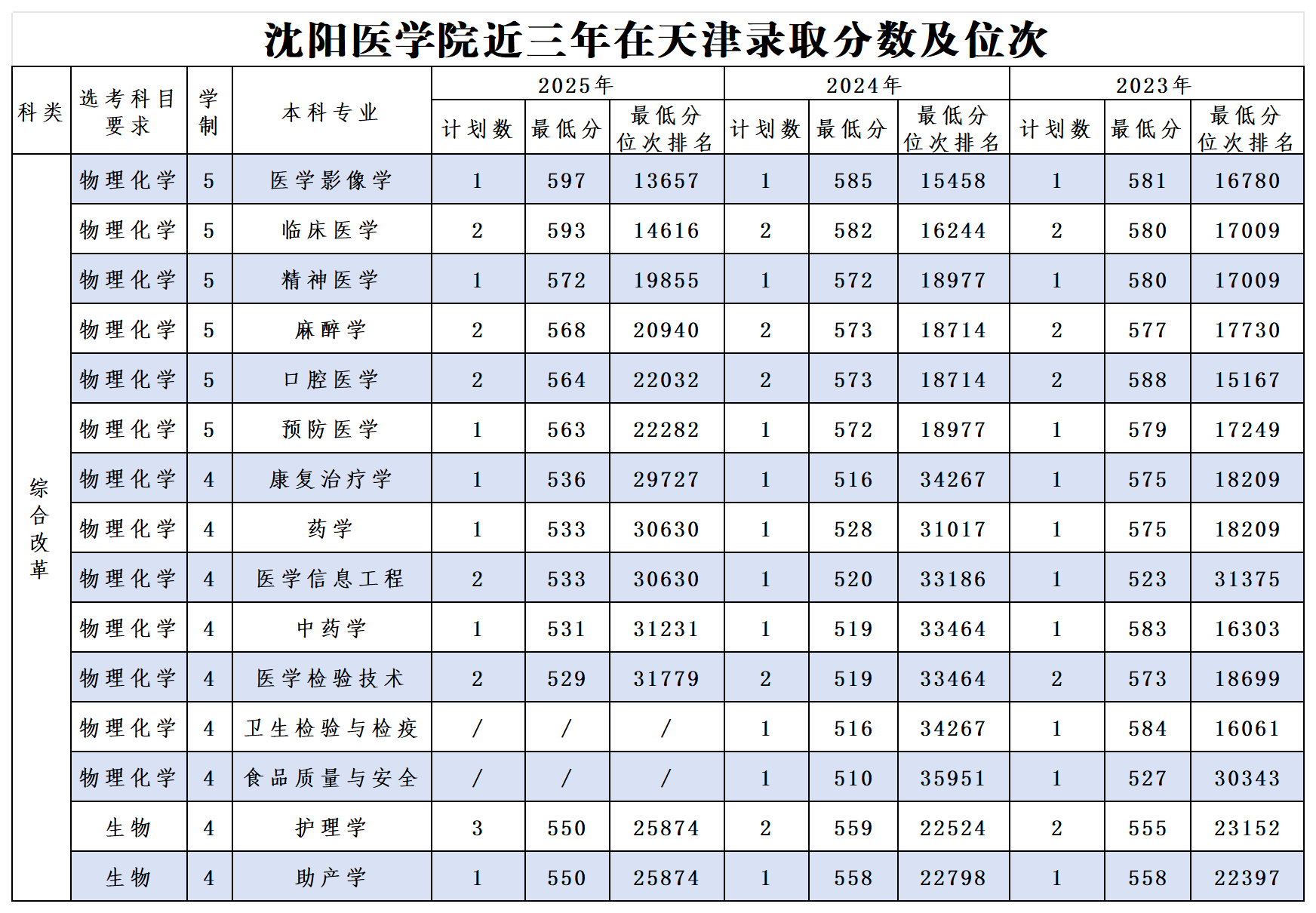 权威发布|沈阳医学院近三年在天津、河北、山西省录取分数及位次